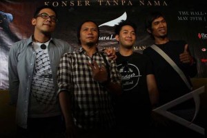 (ki-ka) David, Reza, Uki, dan Lukman menghadiri konfrensi pers jelang "Konser Tanpa Nama" (ANTARA/Teresia May)